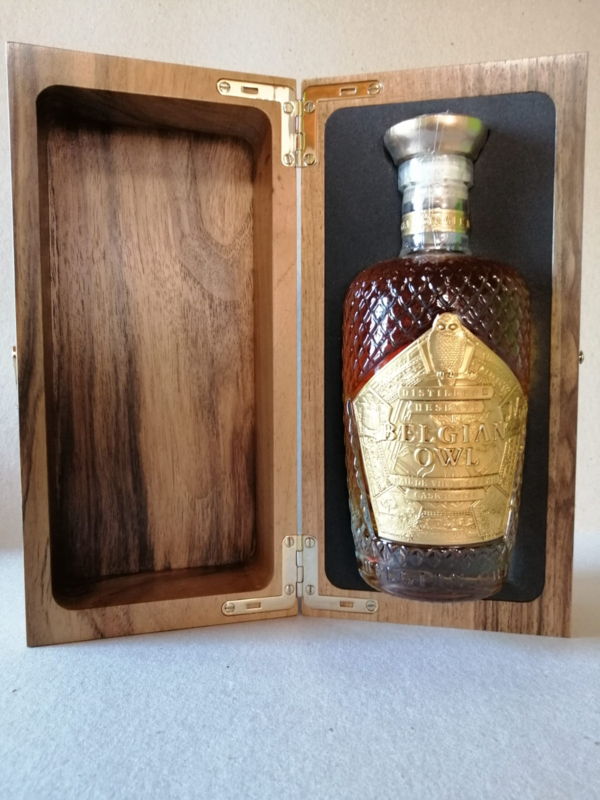 The Belgian Owl Gold Diamond is a rare, limited-edition Belgian single malt whisky known for its unique finish in a saffron-filled atmosphere. Only 1,000 bottles were produced worldwide, each hand-numbered and signed by the master distiller.