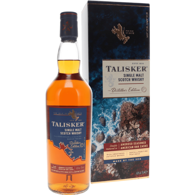 OverzichtDe Talisker Distillers Edition is een single malt Scotch whisky die bekendstaat om zijn maritieme, rokerige karakter, aangevuld met een fruitige zoetheid door dubbele rijping in Amoroso sherryvaten. Deze whisky heeft een alcoholpercentage van 45,8% en is verkrijgbaar bij diverse (online) retailers.