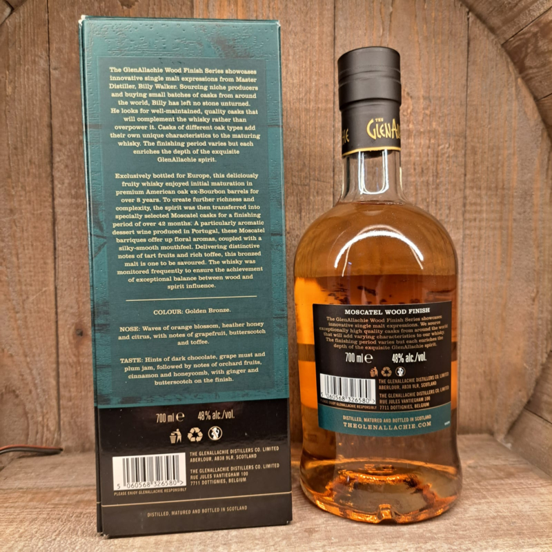 OverzichtDeze heerlijk fruitige whisky, exclusief gebotteld voor Europa, heeft een initiële rijping ondergaan in ex-Bourbonvaten van premium Amerikaans eikenhout gedurende meer dan 8 jaar. Om de complexiteit nog verder te vergroten, werd de spirit vervolgens overgebracht naar speciaal geselecteerde Moscatel-vaten voor een afwerkingsperiode van meer dan 42 maanden.
